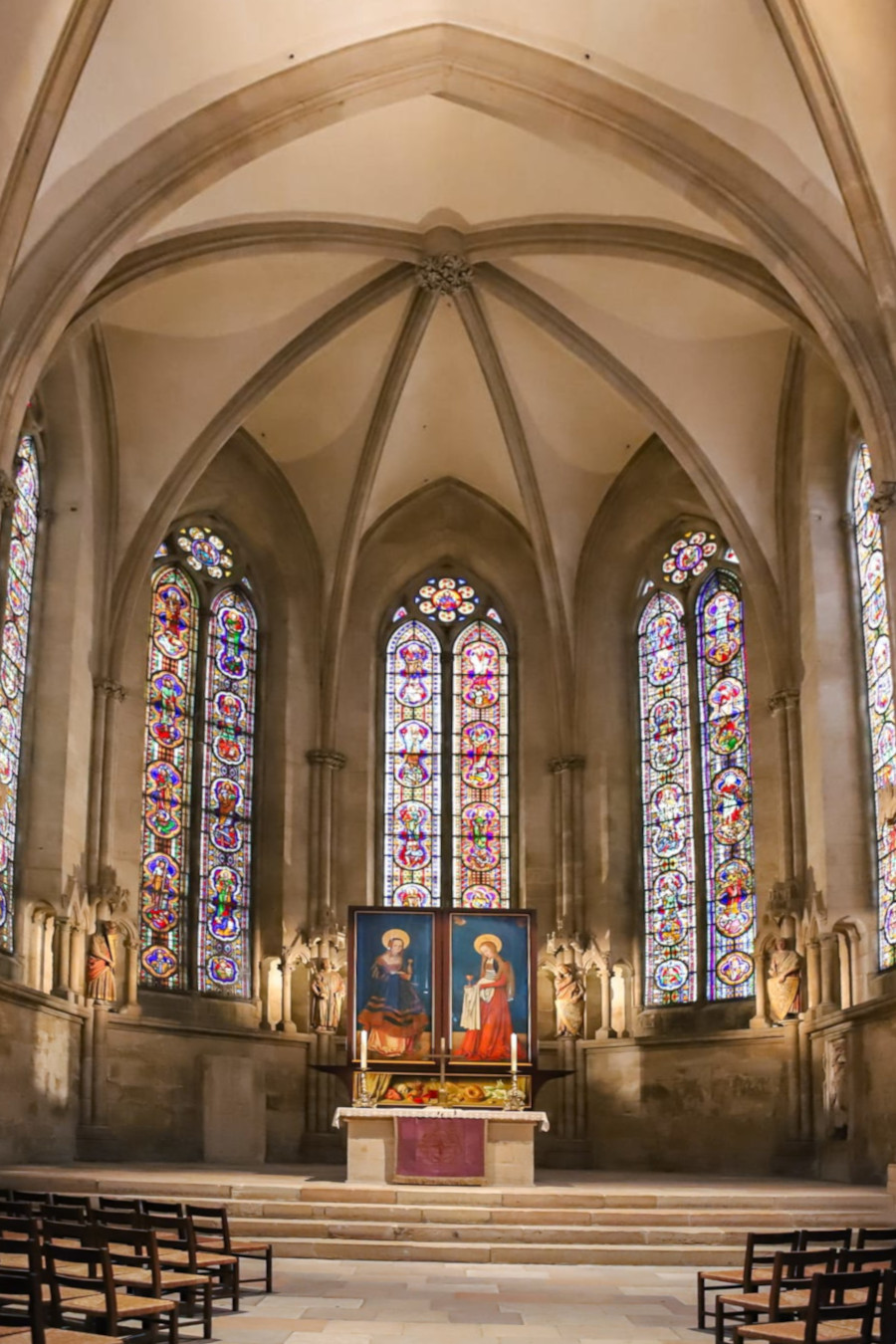 Viel hat sich inzwischen natürlich nicht verändert. Wir hatten aber gehofft, den neugestalteten, kontrovers diskutierten Marienaltar zu sehen. Das war leider nicht möglich (Bild oben Mitte). Trotzdem noch einige Impressionen.